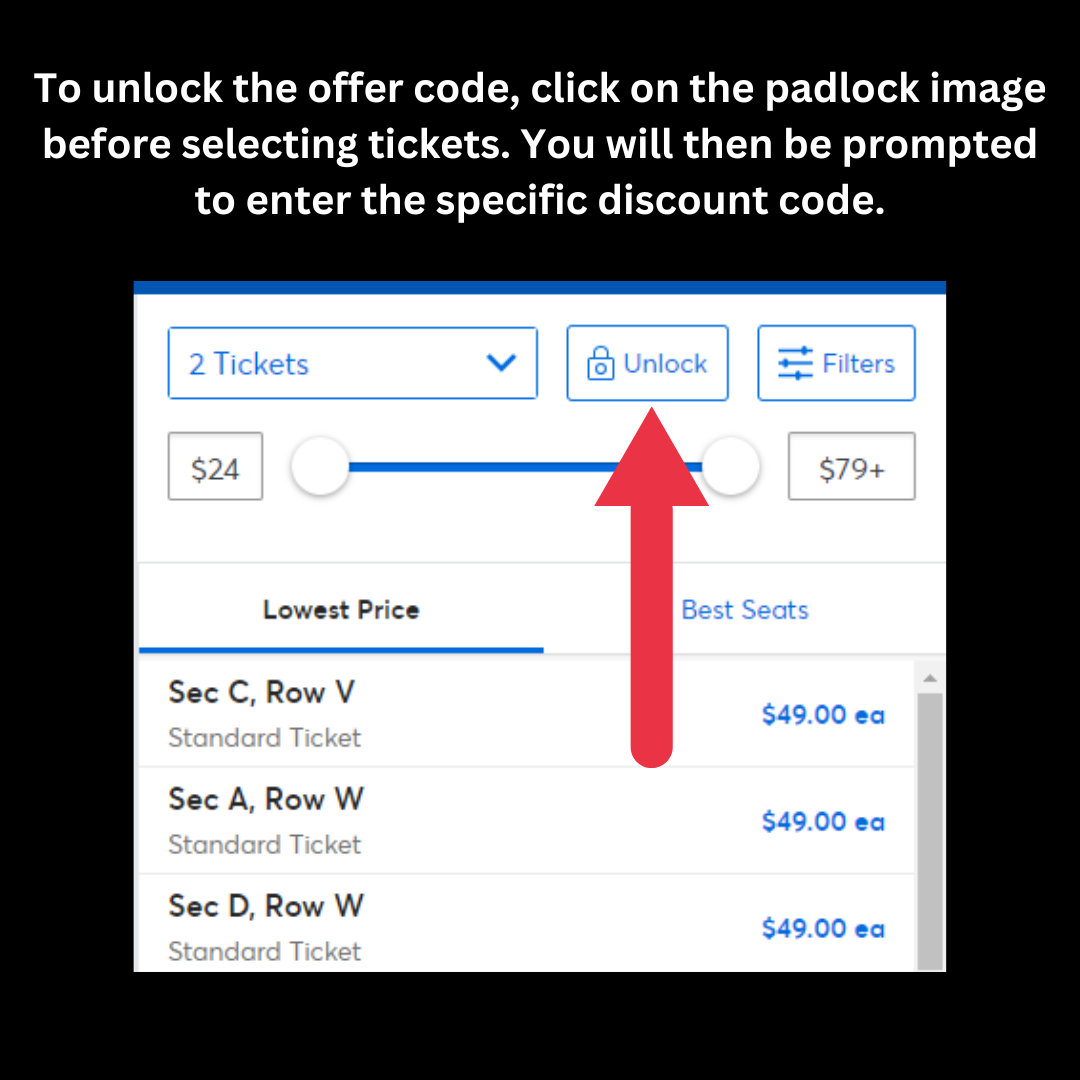 YOU MUST ENTER OFFER CODE BEFORE SELECTING SEATS.